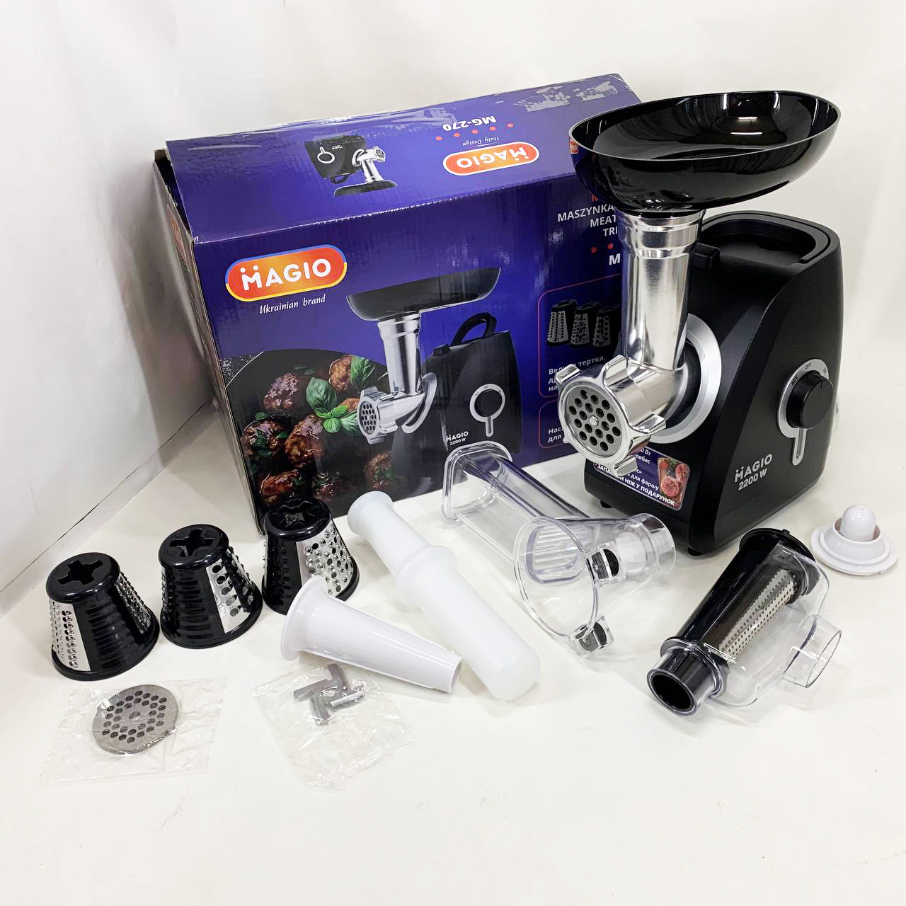 | Товар | Потужна м'ясорубка з насадками MAGIO MG-270 2200 Вт, М'ясорубка система реверсу, М'ясорубка-соковичавниця NT-78 |